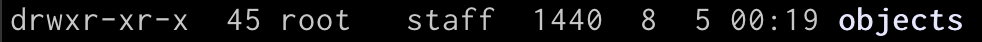 우선 기본 objects 를 포함한 디렉토리들의 권한을 보면 쓰기 권한은 파일 소유자에게만 존재한다.